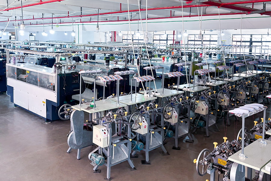 Táirgí cniotáilte ribín