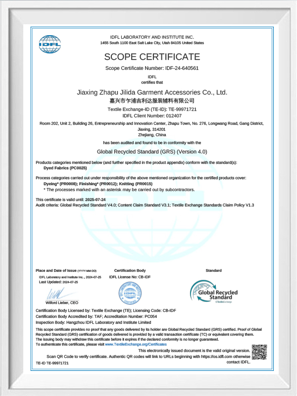 Díríonn Jiaxing Zhapu Jilida Accessories Co., Ltd. ar nuálaíocht theicneolaíoch agus ar fhorbairt táirgí freisin. Tá foireann ghairmiúil T&F ag an gcuideachta atá tiomanta do fhabraicí agus táirgí nua a sheoladh go leanúnach chun freastal ar riachtanais athraitheacha an mhargaidh. Chuir an spiorad nuálaíochta leanúnach seo ar chumas Jilida seasamh ceannródaíoch a choinneáil i gcónaí sa chomórtas margaidh fíochmhar. $ $